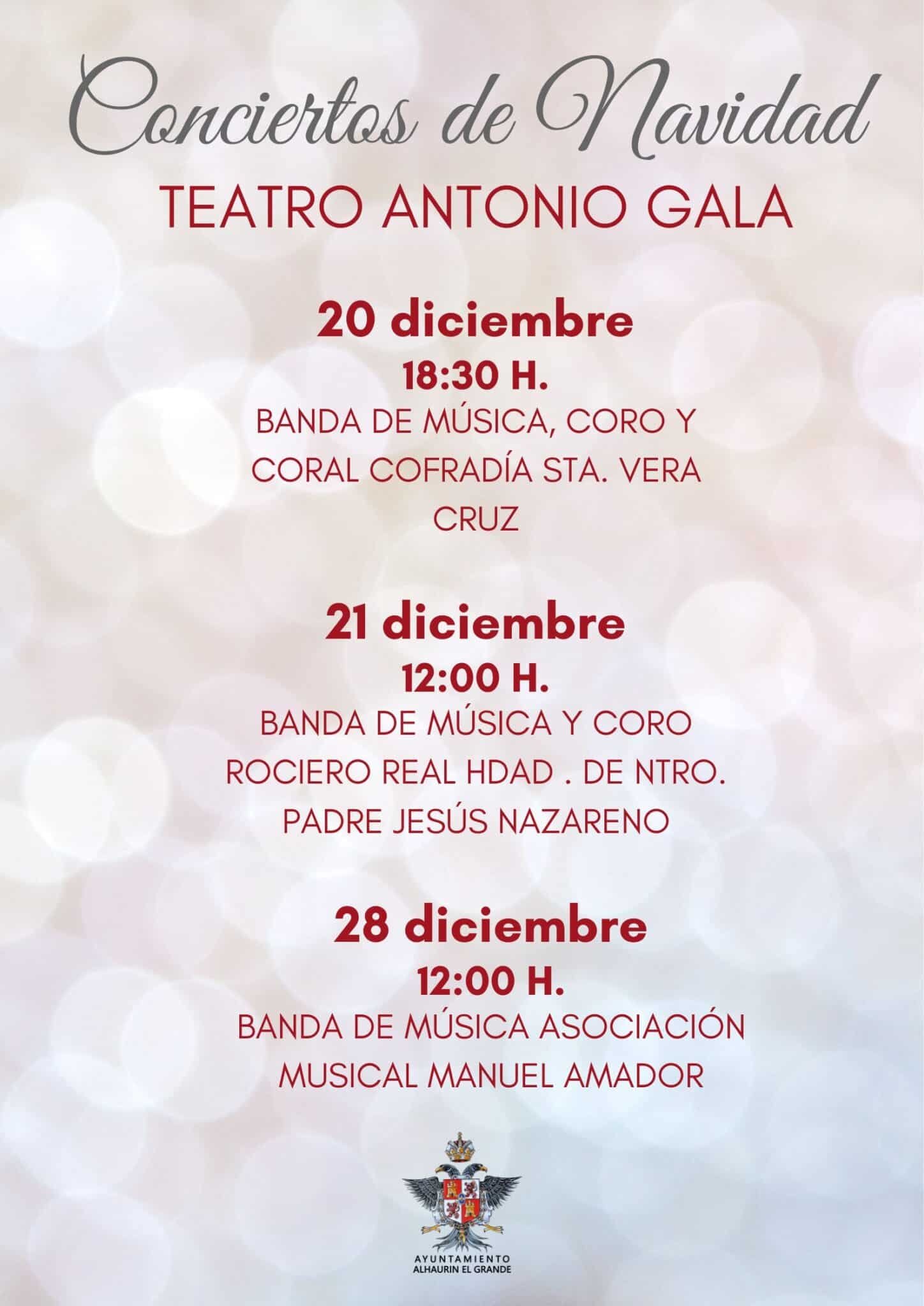 Los conciertos gratuitos se celebrarán los días 20, 21 y 28 de diciembre en el Teatro Municipal Antonio Gala, que volverá a convertirse en escenario del mejor ambiente navideño.