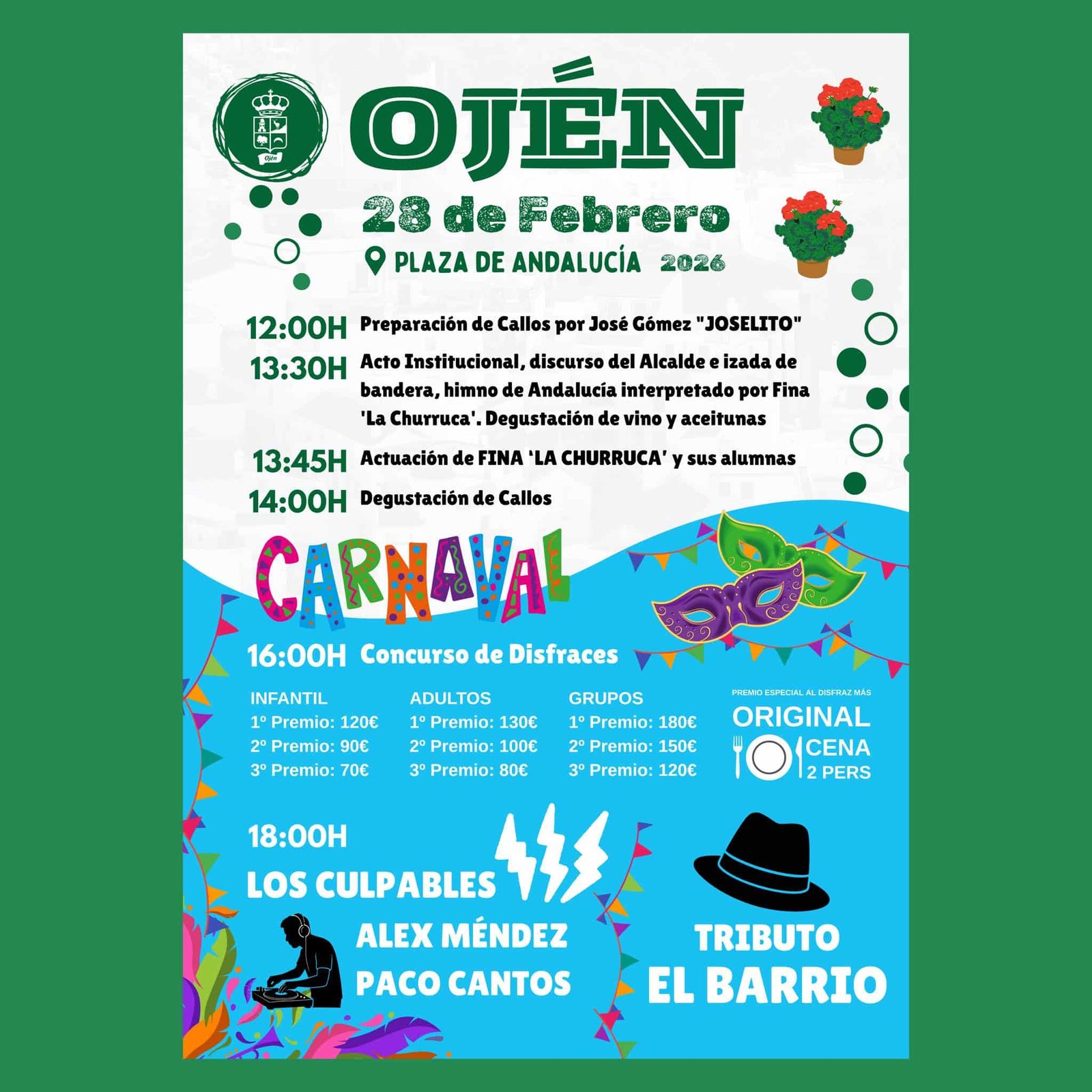 El 28 de febrero celebran en Ojén el Día de Andalucía junto con el Carnaval en la Plaza de Andalucía.
