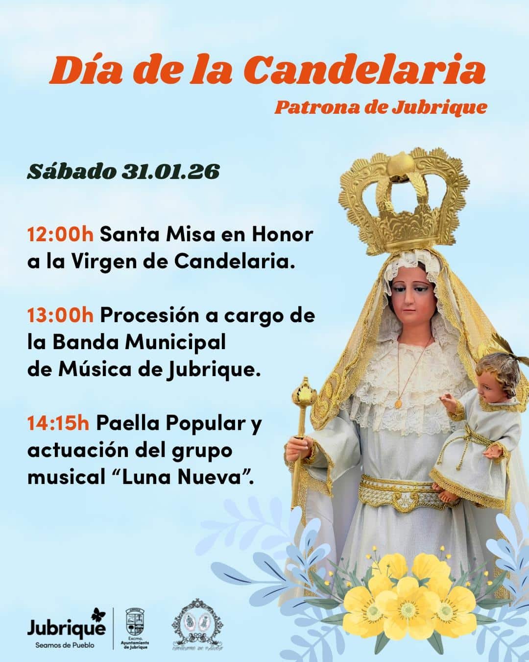El 31 de enero en Jubrique se celebra el Día de la Candelaria con una misa seguida de una procesión por el pueblo.