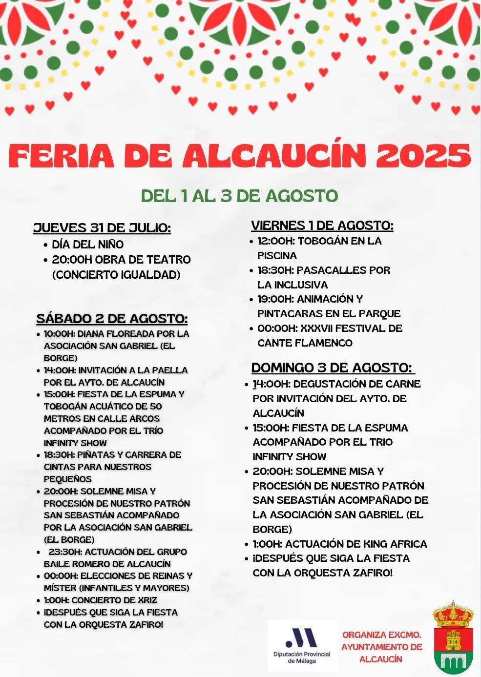 La localidad celebra sus fiestas patronales en honor a San Sebastián con una programación llena de tradición, música y buena comida. El jueves 1 de agosto, por la noche, tendrá lugar un Festival de Cante Flamenco. Durante el fin de semana habrá pasacalles, concierto de la banda de música municipal, misa y procesión acompañada por el coro rociero municipal. El sábado al mediodía se ofrecerá paella gratuita, y el domingo, carne guisada para todos los asistentes.
