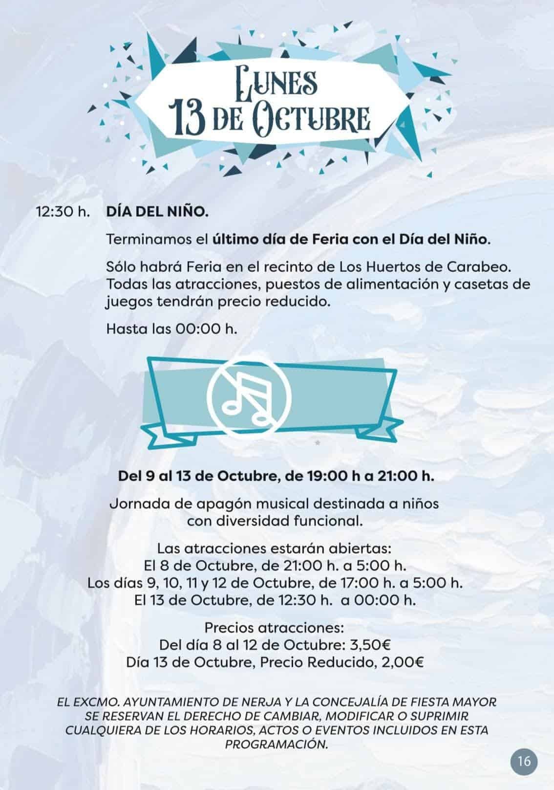 Más información en cartel y en Facebook Ayuntamiento de Nerja.