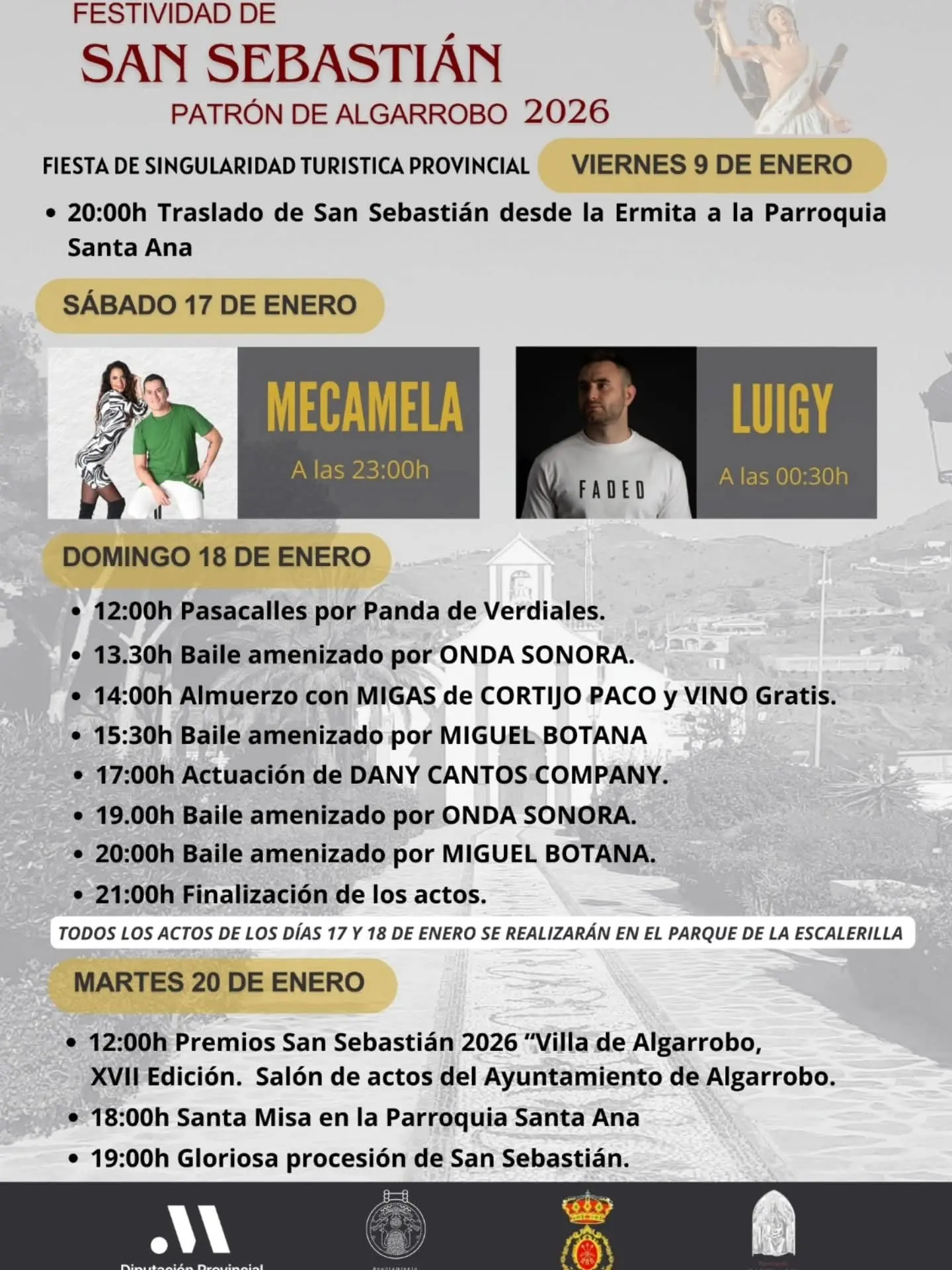 12:00h – Premios San Sebastián 2026, XVII edición. Salón de actos del Ayuntamiento de Algarrobo
