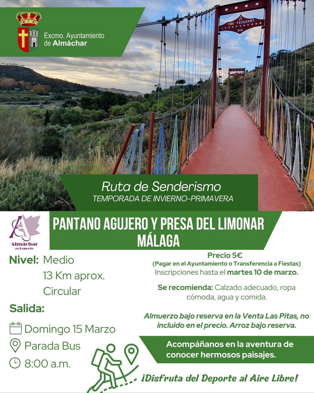 Además, para quienes quieran reponer fuerzas, se ofrece un almuerzo en Venta Las Pitas, que hay que reservar previamente. Las inscripciones están abiertas hasta el 10 de marzo, ¿te animas a formar parte de esta aventura al aire libre?