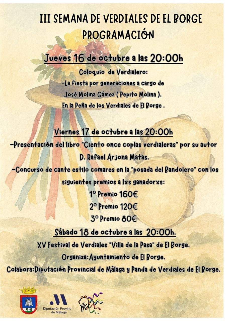 El Borge se prepara para vivir uno de sus fines de semana más especiales con el XV Festival de Verdiales “La Villa de la Pasa”, una cita imprescindible para los amantes del folclore malagueño. Durante tres días, la localidad se llenará de música, tradición y cultura popular.