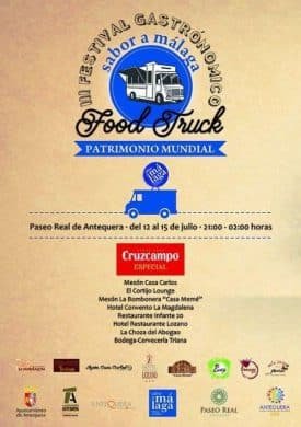¡Food trucks de 21:00 h a 2:00 h en el Paseo Real y conciertos para conmemorar el primer aniversario de la Declaración de los Dólmenes Patrimonio Mundial de la Unesco! Más información en cartel y en Facebook Ayuntamiento de Antequera.
