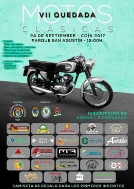 ¡Concentración de motos clásicas con trofeso y regalos! Inscripción 5 € con paella y cerveza. Más info en cartel y en Facebook Ayuntamiento de Coín.