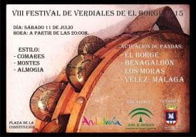 ¡Festival de Verdiales! A partir de las 20:00 h en la Plaza de la Constitución con pandas del estilo Comares, Montes y Almogía.