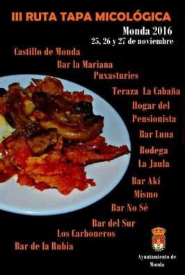 Actividad gastronómica con motivo de las VII Jornadas micológicas que se celebran en la localidad. Más info en cartel y en facebook Ayuntamiento Monda