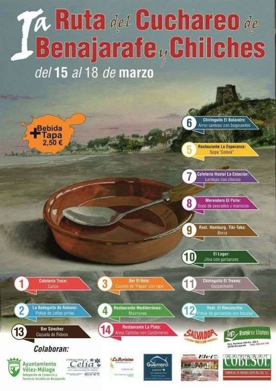 ¡Ruta gastronómica de platos de cuchara entre Benajarafe y Chilches! Bebida + tapa 2,50 €. Más información en cartel.