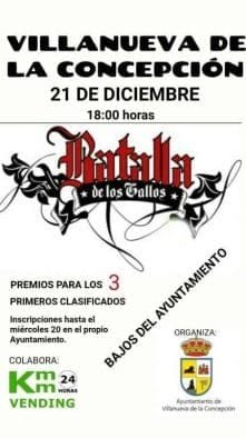 ¡ Concurso de rap con premios! Inscripciones hasta le día 20 de diciembre en el Ayuntamiento de Villanueva de la Concepción. Más info en cartel.