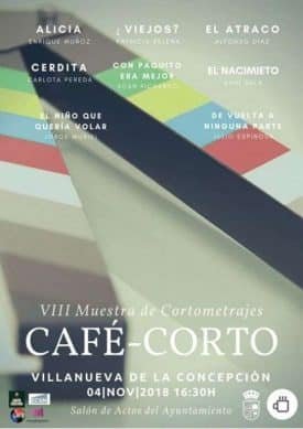 8 cortometrajes componen la octava edición del CAFÉ-CORTO de Villanueva de la Concepción que se celebrará el próximo 4 de noviembre en el Salón de Actos del Ayuntamiento. En la selección de este año se recogen diferentes géneros que van…